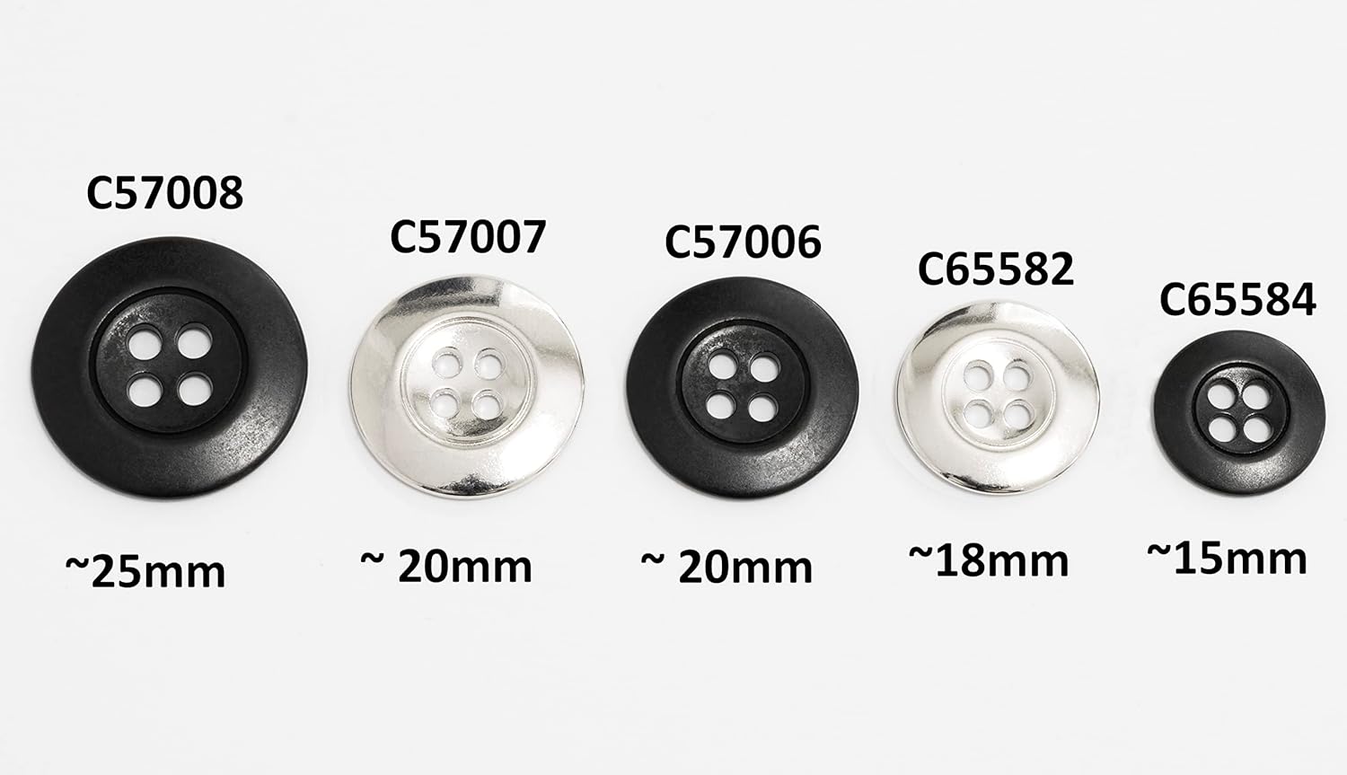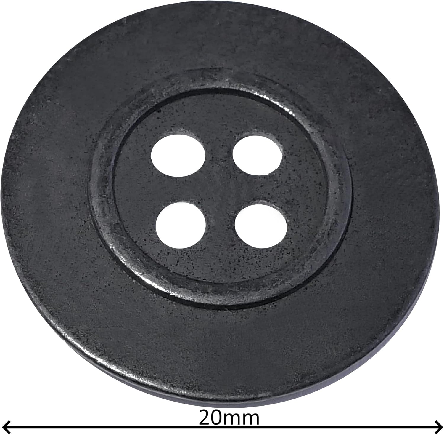 Dimensions: Button diameter: 20 mm. Number of holes: 4. Unit weight: 2.4 g. Material: Metal Color: black graphite.