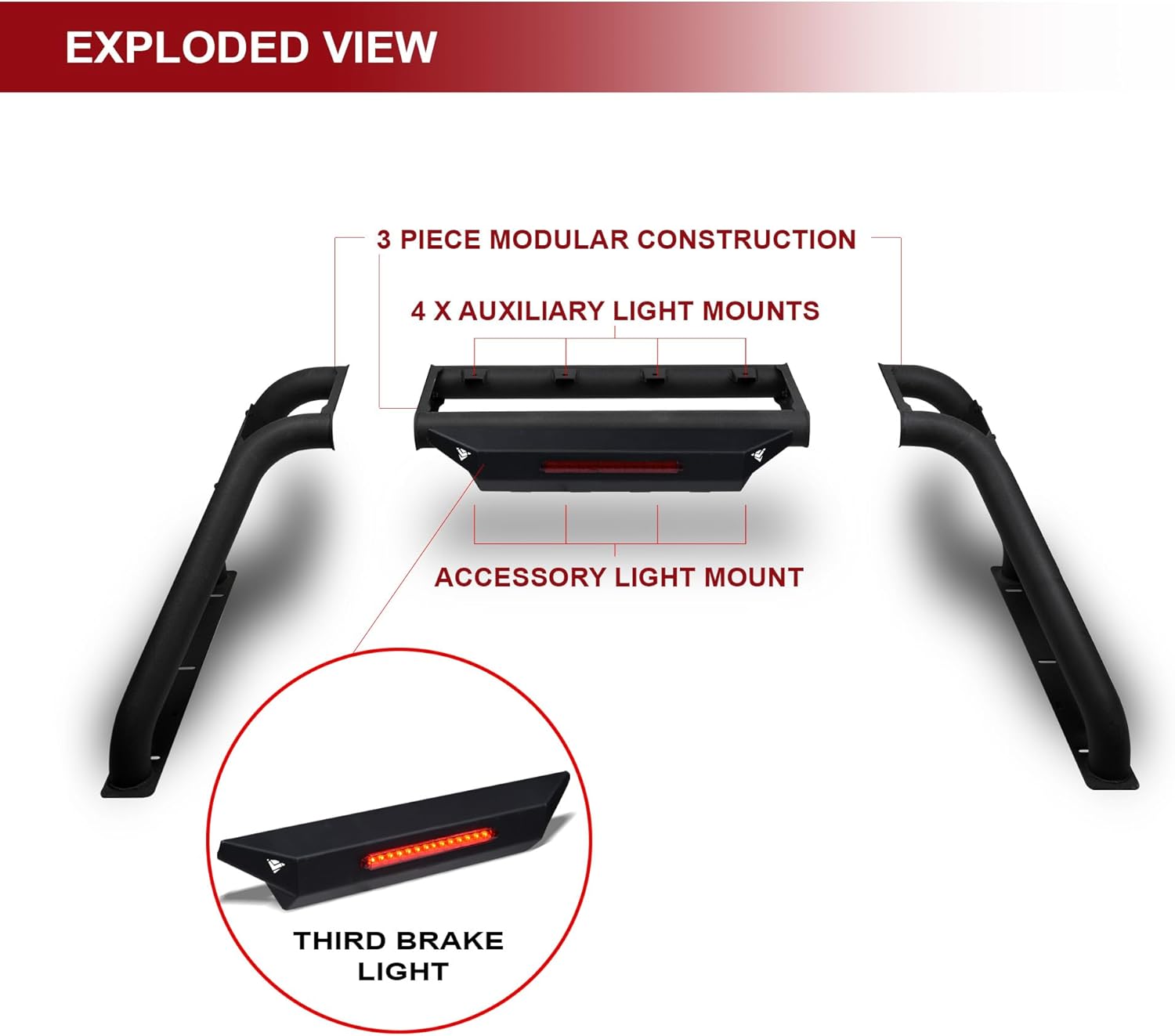 | Model | Armordillo 8722473 CR-B Modular Adjustable Chase Rack Roll Bar With LED 3rd Brake Light - Textured Black |