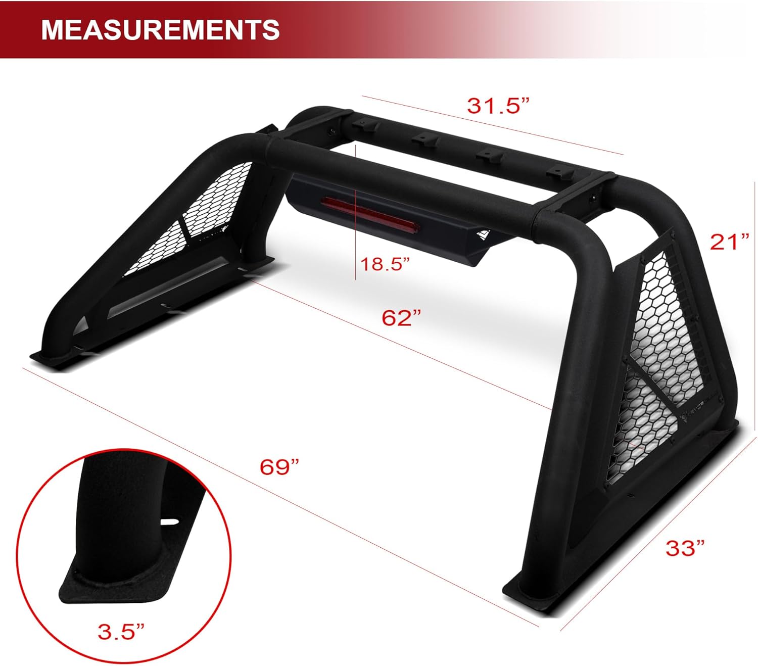 Armordillo CR-B Chase Rack Roll Bar Is The Ultimate Solution For Most Full Size (1/2 Ton) Pickup Truck Owners Who Want The Perfect Combination Of Style And Function, All In One Convenient Package. This Premium Rack Is Constructed From Heavy-Duty Carbon Steel To Ensure It Provides Maximum Durability And Performance. The 3" Tubing Mandrel Bend And 4" Mount Base Plate Are Powder-Coated In Texture Black To Ensure A Sleek And Strong Finish. Installation Is A Breeze With The Included Hardware; Following The Easy Diy Instructions, You'Ll Have Your Truck Bed Upgraded In No Time. Not Only Does This Rack Look Great, It Is Also Incredibly Functional! It Includes A Third Brake Light For Superior Visibility On The Road So You Can Drive Safely With Your Passengers Onboard. It Also Comes With 4 Auxiliary Mounting Tabs So You Can Mount 5" Round Lights Or 50" Led Light Bars (Bottom Mount Type). This Will Help You Efficiently Get Your Vehicle Illuminated As You Navigate Any Tough Terrain With Ease. Plus, It'S Great For Mounting A Cb Radio Antenna Too! Whether You'Re Looking To Upgrade Your Current Truck Bed Or Equip Your New One, This Rigorously Tested CRB Chase Rack Roll Bar Will Meet All Your Needs -- Making It An Ideal Choice For Any Pickup Truck Owner.