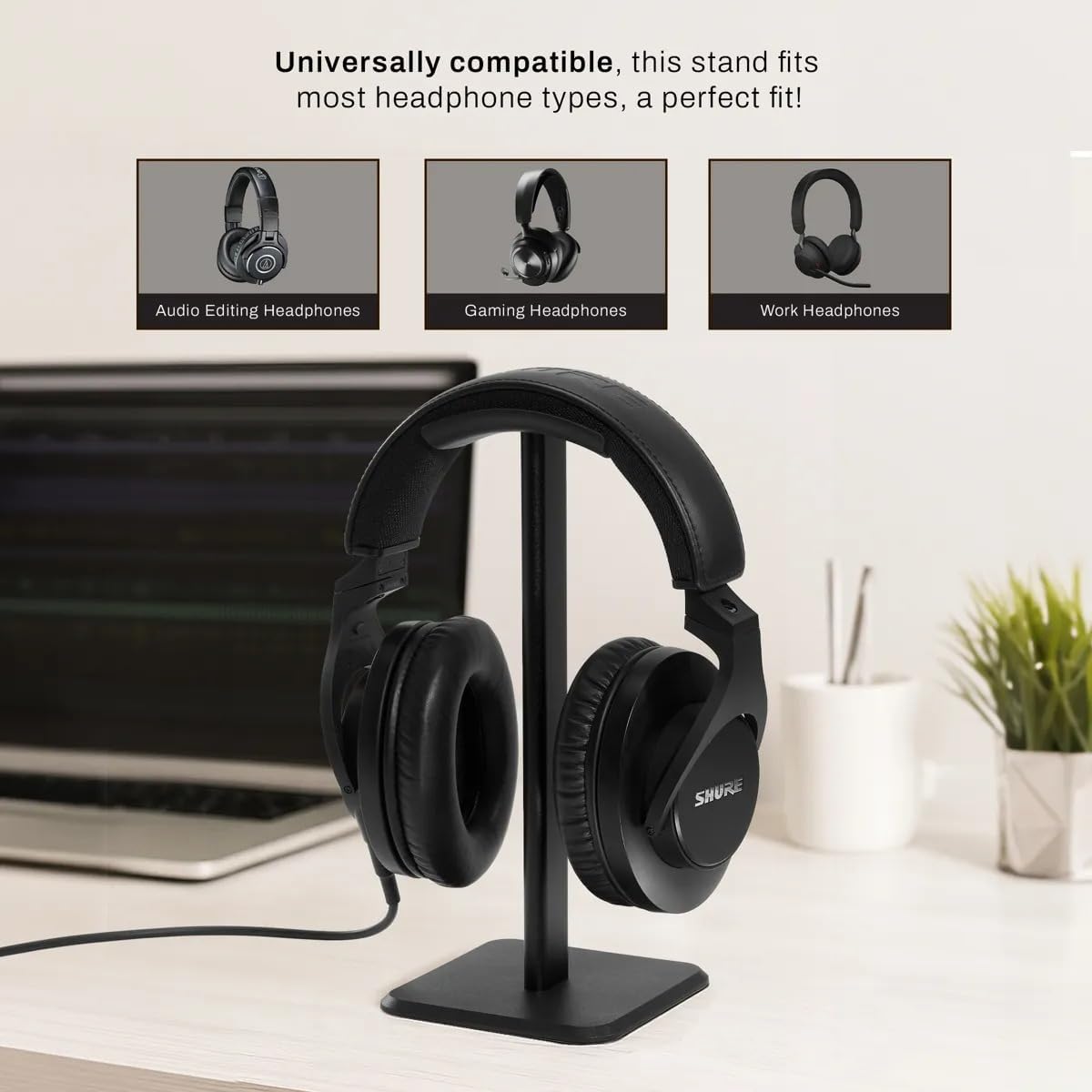 | BuiltIn Media | 1/4" Snap-On Adapter, Audio-Technica ATH-M20x Closed-Back Monitor Headphones (Black), Limited 2-Year Manufacturer Warranty, Turnstile Audio Desktop Headphone Stand with Anti-Skid Silicone Base |