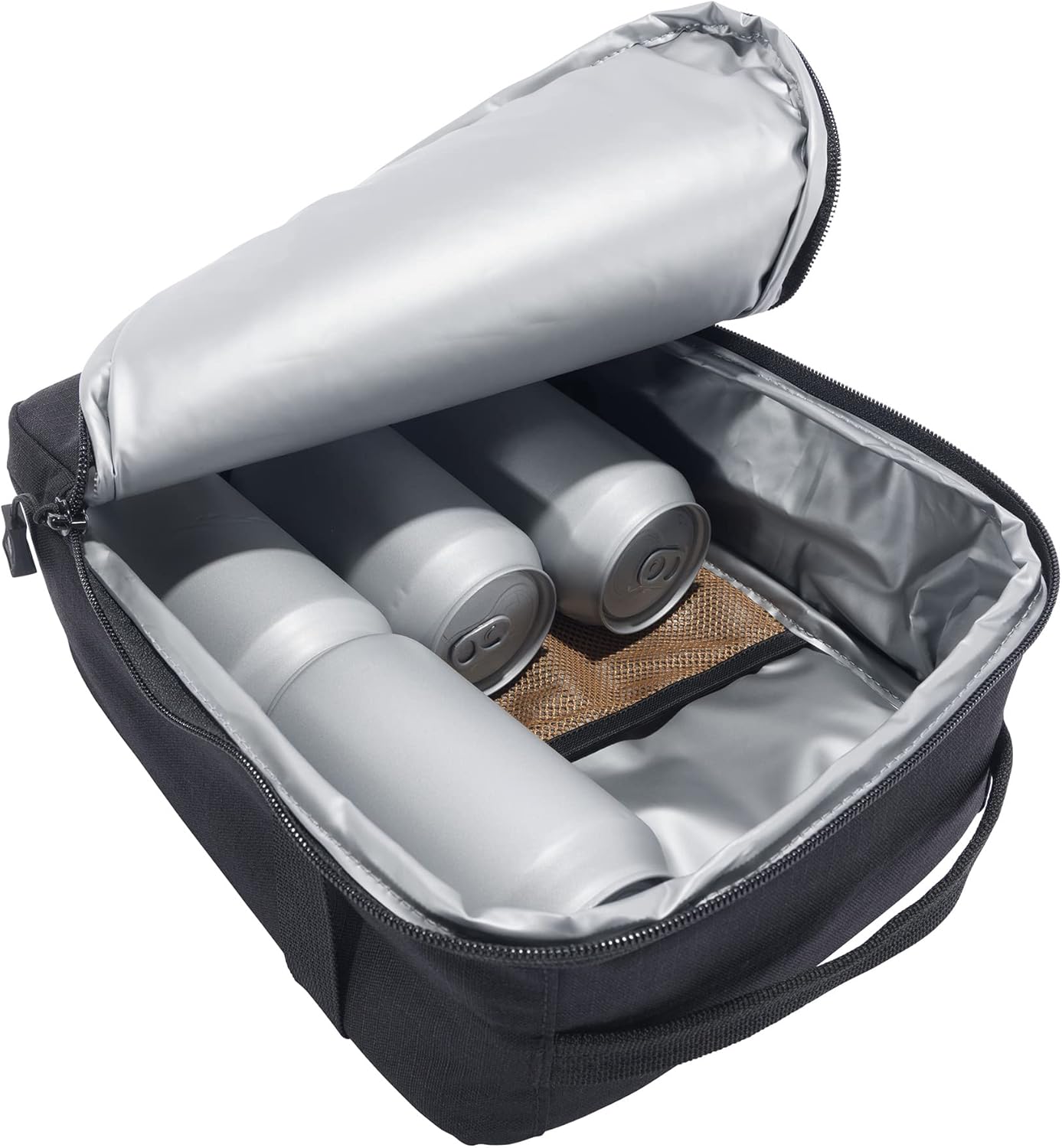 The Carhartt Cargo Series Hook-N-Haul Insulated Cooler Bag keeps food cool and attached to a Cargo pack with Hook-N-Haul system hooks that attach to any Cargo Series pack or bag (sold separately), and retract into a pocket when not in use. Constructed from heavy-duty Cordura ripstop nylon with Rain Defender durable water repellent, the cooler features a Carhartt logo patch, and YKK zippers and triple-needle stitching for durability. The fully insulated main compartment has plenty of room for one meal, and maintains temperature for 4 hours. An interior mesh pocket stores an ice pack. The top haul handle makes for easy carrying, and a side loop can hold additional gear. The Carhartt Cargo Series Insulated Cooler Bag measures 9in W x 10.5in H x 3.25in L. Manufacturer’s limited warranty against manufacturing defects in materials and workmanship for the normal life of the product.