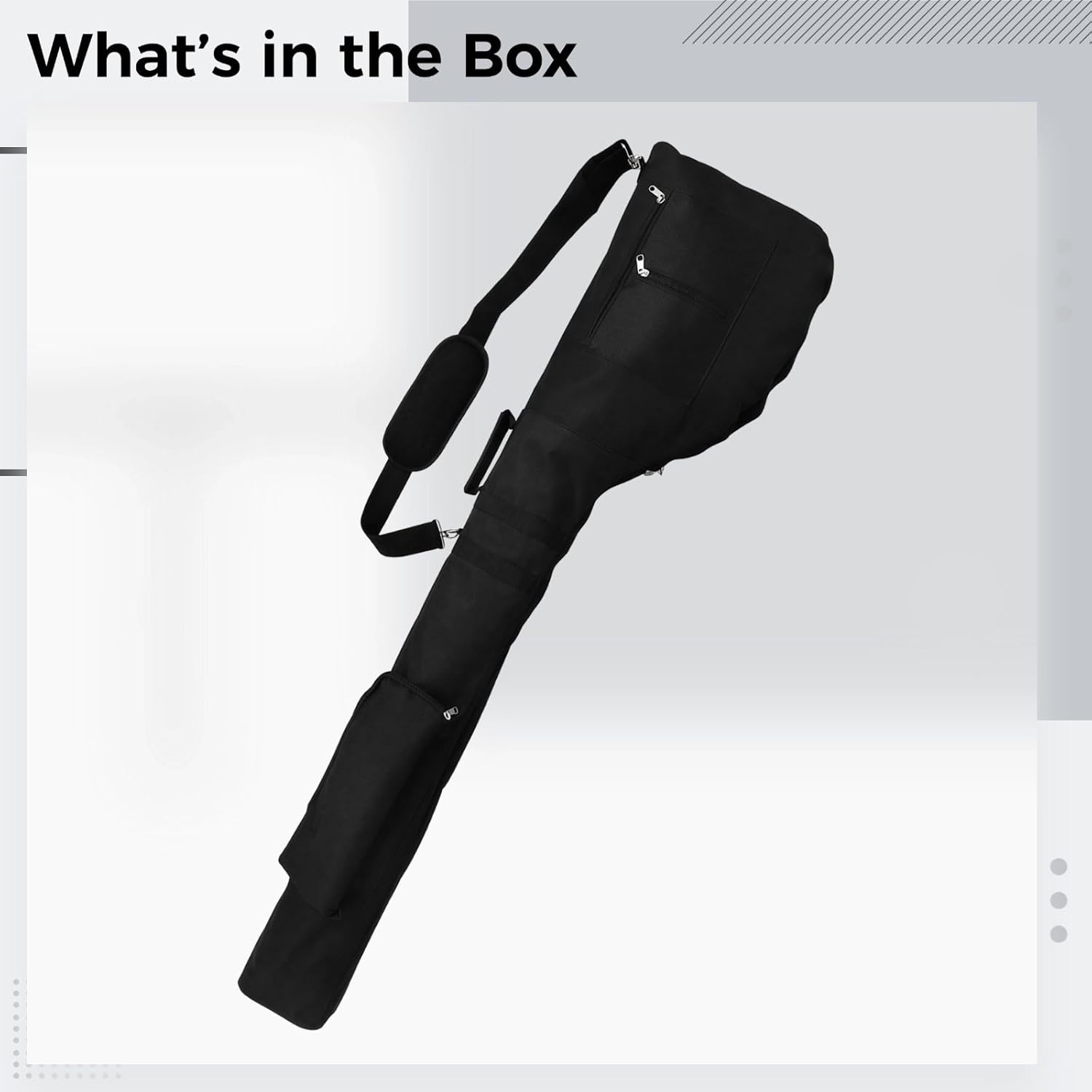 Color: BlackMaterial: PolyesterSize: Golf Club Bag: 13 x 10.6 x 3.9 in / 33 x 27 x 10 cmPackage Includes: 1 x Golf Club BagNote:- Please refer to the measurement. Tiny measuring error is allowable in normal range.- There might be a little color difference due to the monitor, camera or other factors, please refer to the physical item.