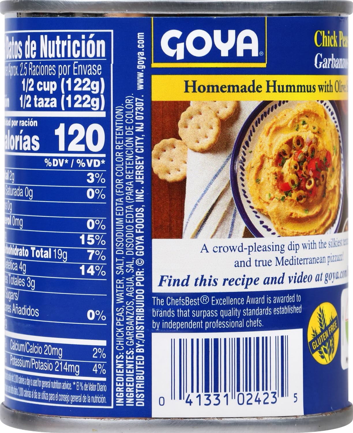 Goya Foods Chick Peas, 10.5 Ounce (Pack of 24). These creamy and delicious garbanzo beans are perfectly whole and plump to bring out the best in every recipe. They have premium texture, aroma and flavor. Use them to make classic hummus and more plant-based dishes. They're gluten-free, low fat, cholesterol-free, trans fat free and kosher. They're also a good source of fiber.