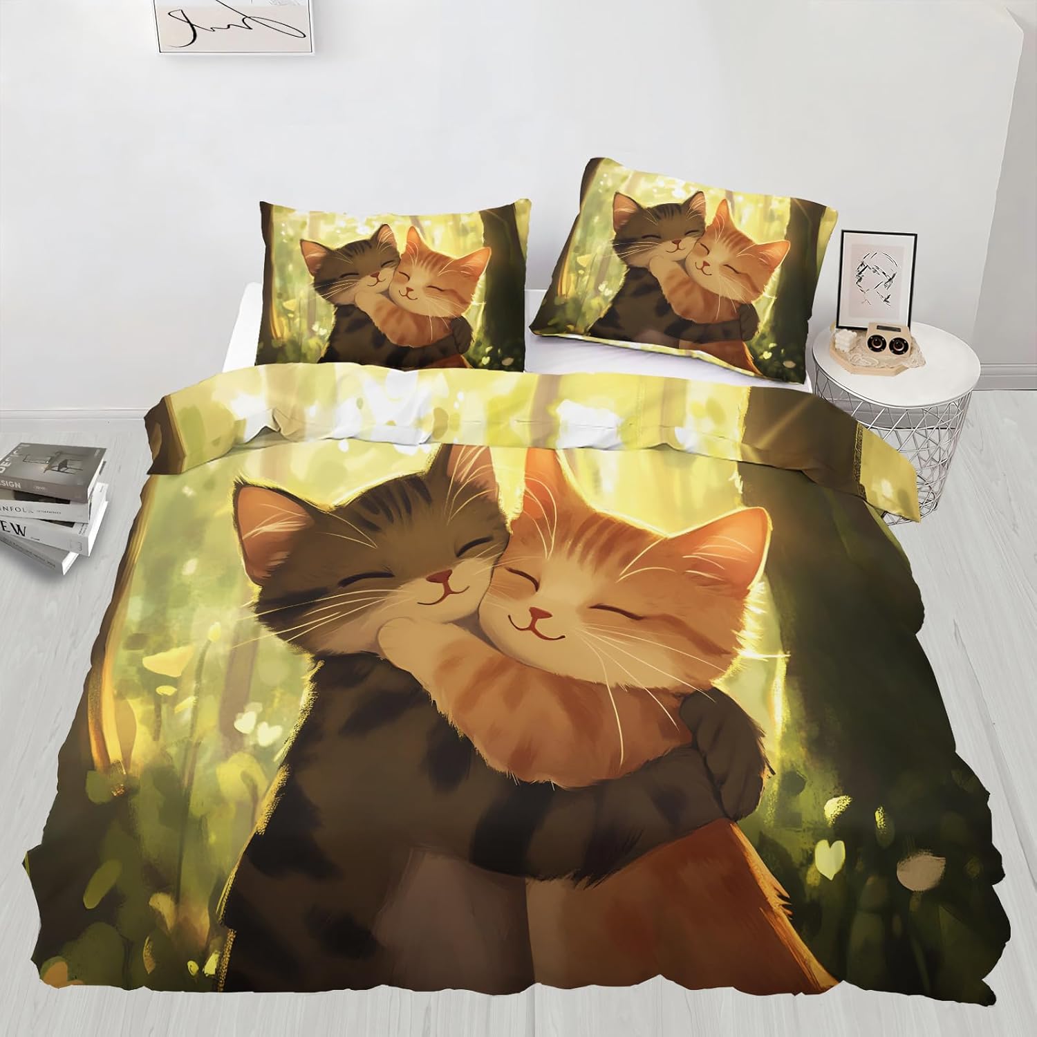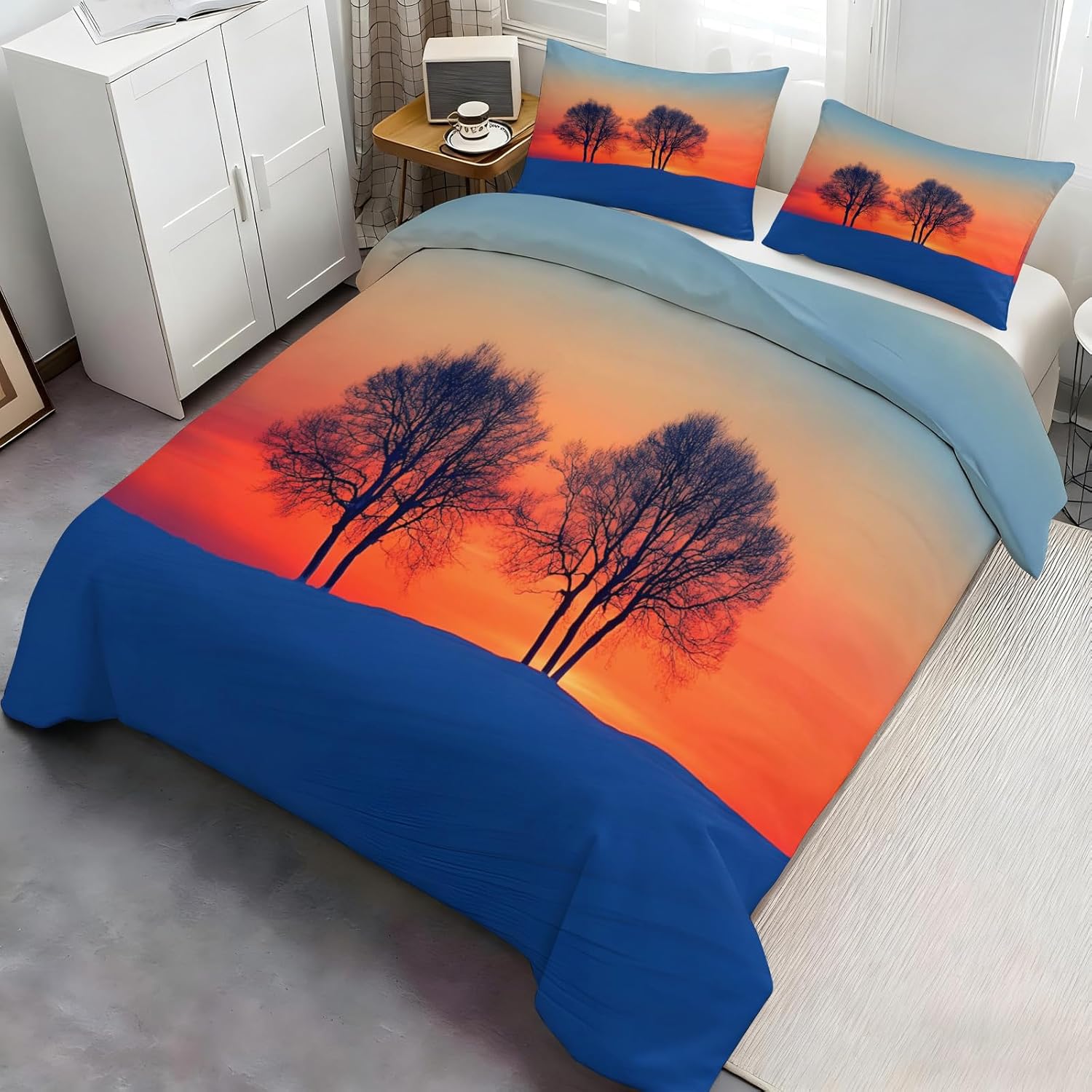 Express Your Personality Through Bold PrintsYour bedroom should reflect you — this printed duvet cover set adds personality and charm with a wide selection of artistic patterns. Whether your style is calm and minimal or vibrant and playful, there's a design to complement any mood or interior.Soft, Breathable, and Year-Round ComfortableCrafted from premium microfiber, this duvet cover feels smooth and skin-friendly. Lightweight yet cozy, it's breathable for summer and insulating for cooler nights — perfect for all-season use.Fade-Resistant Colors that LastPrinted using advanced reactive dyeing, our patterns stay rich and vibrant after repeated washes. No fading, no bleeding — just long-lasting style that holds up over time.Thoughtful Details for Effortless UseHidden zipper closure keeps the look clean and makes insert changes quick.Four interior corner ties prevent the duvet from bunching or shifting at night.Durable stitching ensures long-term reliability and washability.Complete Set, Effortless MakeoverEach set includes:1 Duvet Cover(Twin size measures 68 by 86-inch)2 Matching Pillowcases(Pillow Cases 20 by 26-inch)NOTE: Comforter and Sheet Not IncludedPerfect for bedrooms, dorms, guest rooms, or as a gift — it’s a quick, stylish upgrade for any bed.Comfort Meets CreativityMake a statement with your bedding. Whether decorating your space or gifting someone special, this printed duvet cover set blends comfort, quality, and personality — all in one.