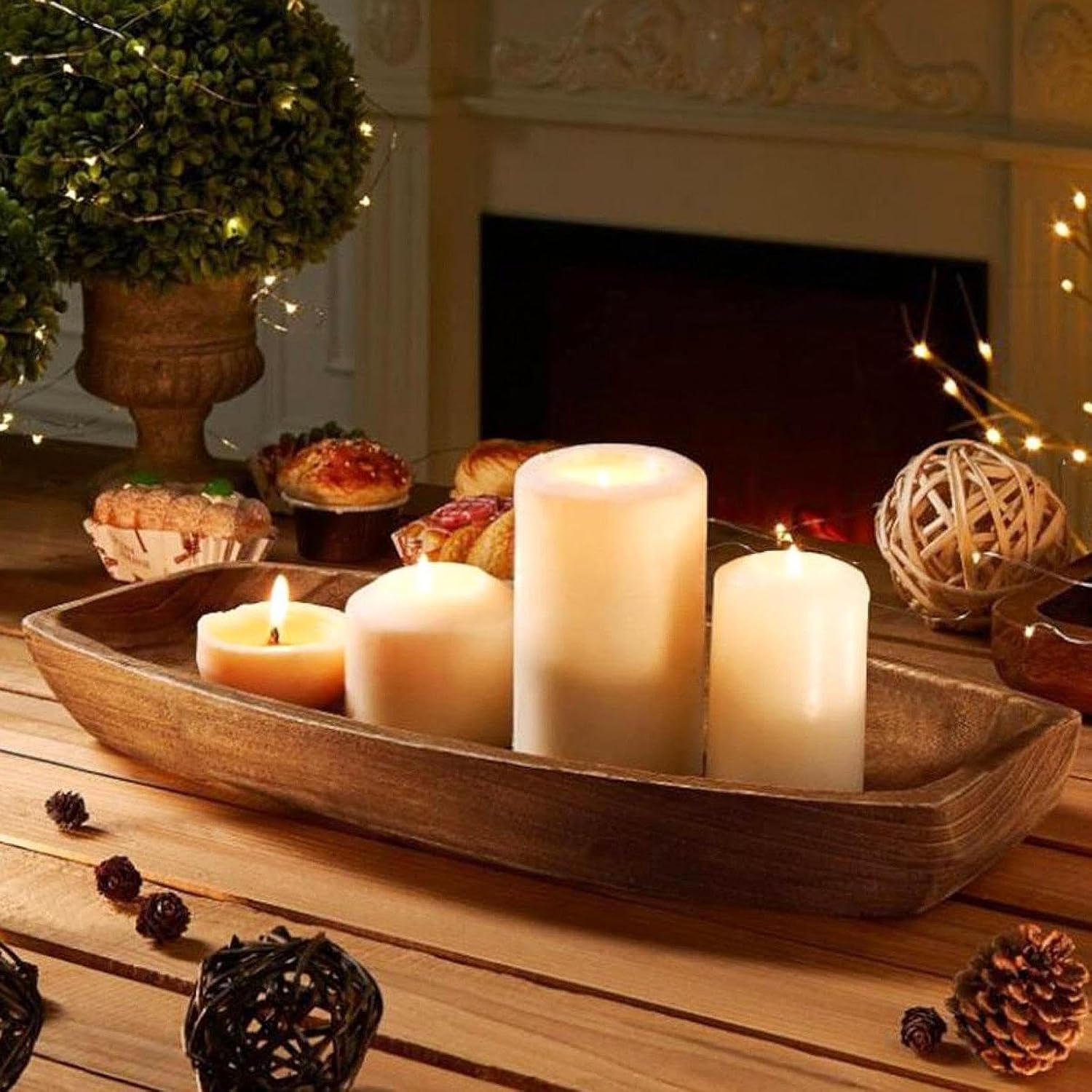 Description: - 【Premium Material】: Bowl is crafted from solid wood with a smooth, showcasing wood grain and texture for an authentic look - 【Table Decoration】: Functions beautifully as a decorative candle holder, elegant table centerpiece, or stylish display bowl for various items - 【Multi Purpose Use】: This Candle Holder Tray is ideal for holding pillar candles, candles, aroma accessories, jewelry, and other small treasures - 【Rustic Charm】: This wooden craft storage tray adds warmth touch to any room while offering practical storage space for - 【Size】: Measures 45 cm x 22 cm x 6 cm/17.72 inch x 8.66 inch x 2.36 inch to fit seamlessly on tables or shelvesSpecification: - Material: WoodSize Chart:45cmx22cmx6cm/17.72inchx8.66inchx2.36inchPackage Includes:1 Wooden BowlNote:Please allow slightly errors 1-2cm/0.39-0.79inch differences due to manual measurement.