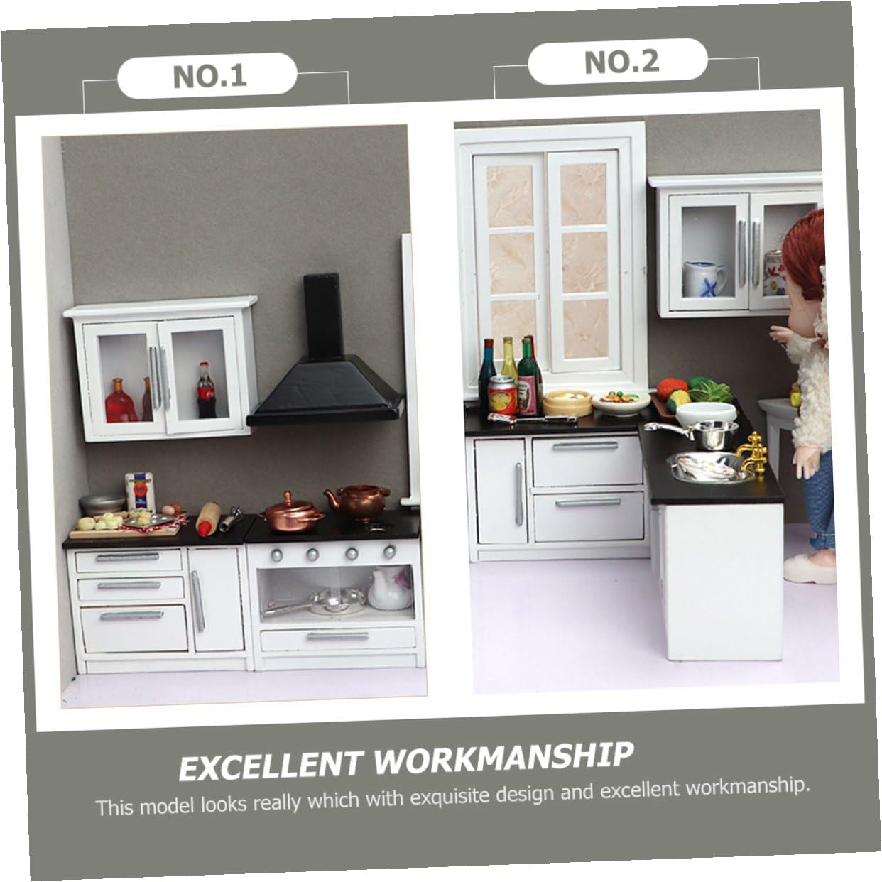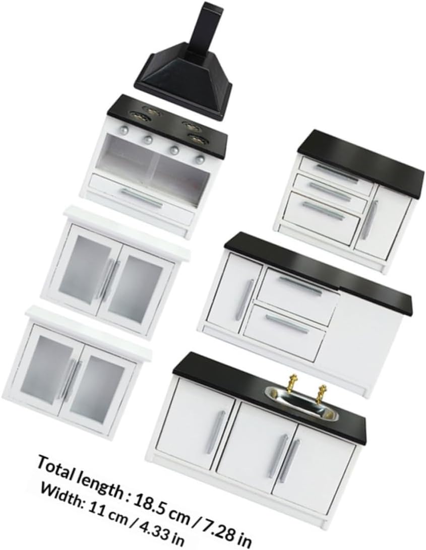 Package List 1 x Mimi Cooking Bench 1 x Mimi Mimi Long Plane Table 1 x Mimi Short Plane Table 2 x Mini Hanging Cabinets 1 Ventilator Characteristics - Material: Wood - Short Plane Table Size: About 8.4x5x6.1cm/3.3x1.97x2.4in - Long Plane Table Size: About 12.7x5x6.1cm/5x1.97x2.4in - Water Channel Size: About 12.4x5x6.1cm/4.88x1.97x2.4in - Kitchen Ventilator Size: About 7x4.5x6.2cm/2.76x1.77x2.44in - Color: Black - Hanging Cabinet Size: About 8.9x3x6.3cm/3.5x1.18x2.48in - Cooking Bench Size: About 8.9x3x6.3cm/3.5x1.18x2.48in -Product Info:Wooden mini furniture - This model looks really which with design and excellent workmanship Miniature Gas Stove. - A great and accessory for who love DIY mini house Wooden Mini Furniture. - Special designed for a mini house, creating a romantic and lifelike circumstance Doll House Furnishings. - They are colorful and elegant, easily matching most mini house decoration styles. - Adopts pure handcraft skill, made of wood material, very durable and delicate.Goods DescriptionDoll House Gas Stove Meanwhile, increase the art for your doll house.Mini Kitchenette It's made of wood material, it is mini house collection decoration.Mini Furniture Mini design is lightweight, it is suitable for mini house layout decoration.Doll House Kitchenette Your small home will have a new look