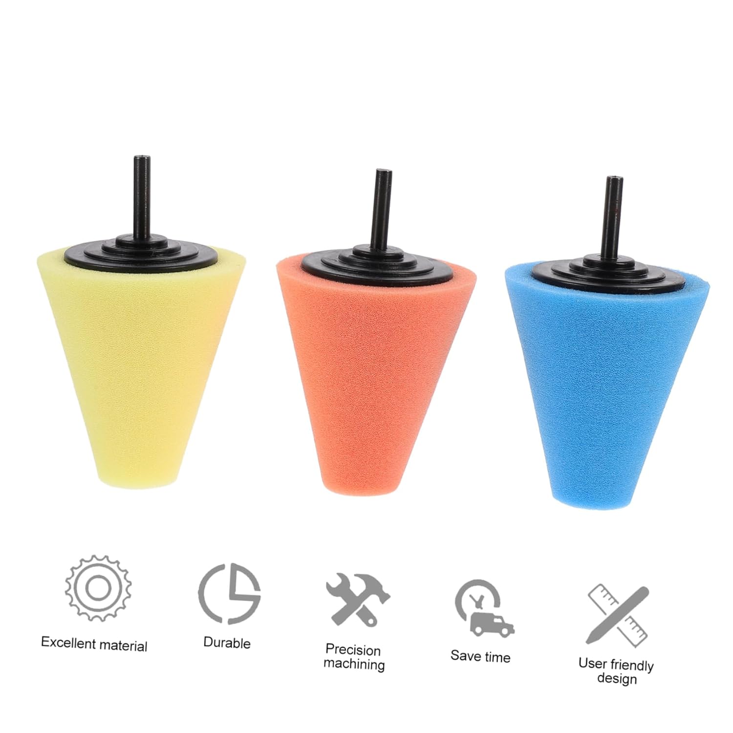 Package List 15 x Buffing Sponge Pads Features - Color: Assorted Drill Buffing Sponge Pads. - Size: About 12.00X7.50X7.50cm/4.72X2.95X2.95inch Car Wheels Care Tool. - Material: Sponge, stainless steel Auto Wheel Polishing Sponge. - These car wheel buffing cone are fits for electric drills and mold grinders Car Accessories. - It is made of materials and Auto Wheel Polishing Pad. - The cone head is entering narrow and hard-to-reach areas and polishing Wheel Polishing Sponge Cone. - Perfect for car detail polishing, like polishing wheels, bumpers and other hard-to-reach spots Wheels Hub Polishing Cone. - It can be used for waxing, polishing and sealing of paints to the brightness of car Wheel Buffing Sponge Pads.Goods DescriptionCar Care Pad It is a durable and car care product.Auto Wheel Polishing Sponge The cone design makes it easy to use on uneven surfaces, bring convenient to your jobs.Wheel Buffing Sponge Pads This cone polishing wheel is mainly made of sponge with moderate hardness.Automotive Wheel Buffing Cone It can be cleaned after use and can be used repeatedly