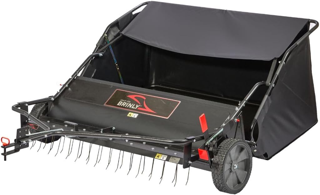 Cut job time in half with the powerful tool that turns dethatching and sweeping into one project instead of two! The LSDT-54BH combines a premium lawn sweeper with a durable tine dethatcher to help you get your projects done faster and easier. A 2-in-1 solution for maximum efficiency, you can dethatch while simultaneously picking up the debris left behind. Just need to sweep? Use the easy-pull handle to move the tines up and out of the way– there’s no need to remove the dethatcher, even in heavy leaves! Built to outperform any line of sweepers on the market, the LSDT-54BH is enhanced with multiple rows of flexible tines. The oversized, full-swing, fabric hamper can haul an incredible 30-cubic feet, meaning less stops for emptying. The Brinly 54” Lawn Sweeper has four times the capacity of a standard lawn mower bagger. With six 11” diameter, high-velocity brushes, you’ll sweep up thatch and debris fast and be well on your way to the healthier, thicker turf you’re after.