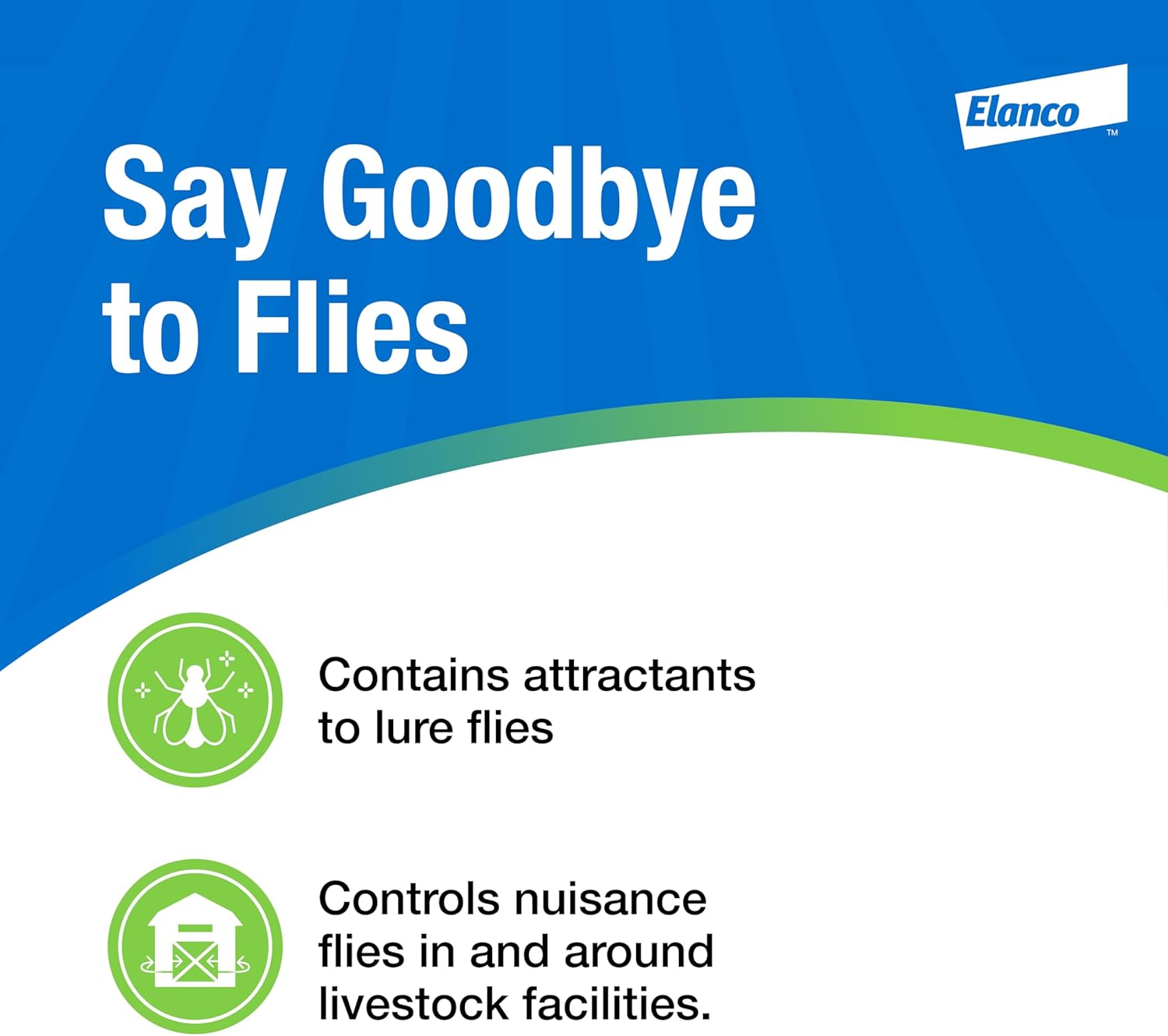 Take the nuisance out of nuisance flies with QuickBayt Fly Bait's fast-acting fly control. This insect killer starts killing nuisance flies in as little as 60 seconds* to help keep your livestock facilities pest-free. QuickBayt contains a specially formulated mixture of attractants to lure flies, as well as Bitrex, a bitter substance that helps to prevent accidental ingestion by non-target animals. QuickBayt Fly Bait comes ready to use as a scatter bait. Scatter around the outside of agricultural production buildings, canneries, warehouses, and more, or on the inside of walkways in caged layer houses. Do not place in areas accessible to animals, children, and pets. Flexible application methods means you can also apply QuickBayt in bait stations inside of horse stables, dairy barns, layer houses, and pig buildings, or as a paint-on application inside and outside of chicken and poultry houses, dairy barns, and pig buildings. QuickBayt Fly Bait kills flies resistant to organophosphates and carbamates. What's more, the specially formulated extruded pellets provide effective fly defense to attack nuisance flies head-on. Rotate chemical classes regularly to ensure a proper Integrated Pest Management program. Elanco has been a trusted partner to farmers and producers since 1954, with over 125 brands. Try the entire portfolio of pest control products. *Reece D Pig Poult Mark 2014 18 (v1.0)