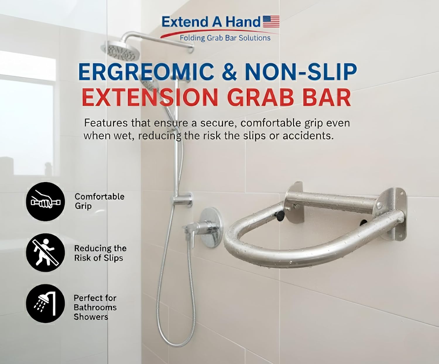 Ensure safety and independence in your bathroom with the 12″ × 12″ Extend-A-Hand Extension Grab Bar. Constructed from premium-grade stainless steel, this heavy-duty grab bar provides reliable support for seniors, disabled individuals, or anyone recovering from injuries. Its sturdy design helps prevent slips and falls, giving users confidence while entering or exiting showers, tubs, or toilets.The ergonomic ensures a secure and comfortable grip even in wet or slippery conditions, reducing the risk of accidents. Designed for versatile use, this extension grab bar easily installs on walls with the included mounting hardware and step-by-step instructions, making it ideal for home bathrooms, assisted living facilities, or rehabilitation centers.Specifications:Material: Premium-grade heavy-duty stainless steel for long-lasting strength and supportDimensions: 16″ × 12″ grab bar extension other Stainless Steel sizes are 12”x12”, 24”x12” and 32”x12”. Black comes in 16”x12” as well as stainless steelFinish: Durable stainless steel or Sleek finish (16”x12”), corrosion and scratch-resistantUse Case: Ideal for seniors, disabled individuals, injury recovery, and rehabilitation.Location: Perfect for bathrooms, showers, tubs, toilets, and other wet areasInvest in your safety and independence with the Extend-A-Hand 16″ × 12″ Extension Grab Bar. Designed for durability, comfort, and easy installation, this grab bar ensures enhanced support and peace of mind for you and your loved ones. Whether for daily bathroom use or rehabilitation needs, it is a reliable solution to prevent slips, improve stability, and promote confident movement in any bathroom environment.
