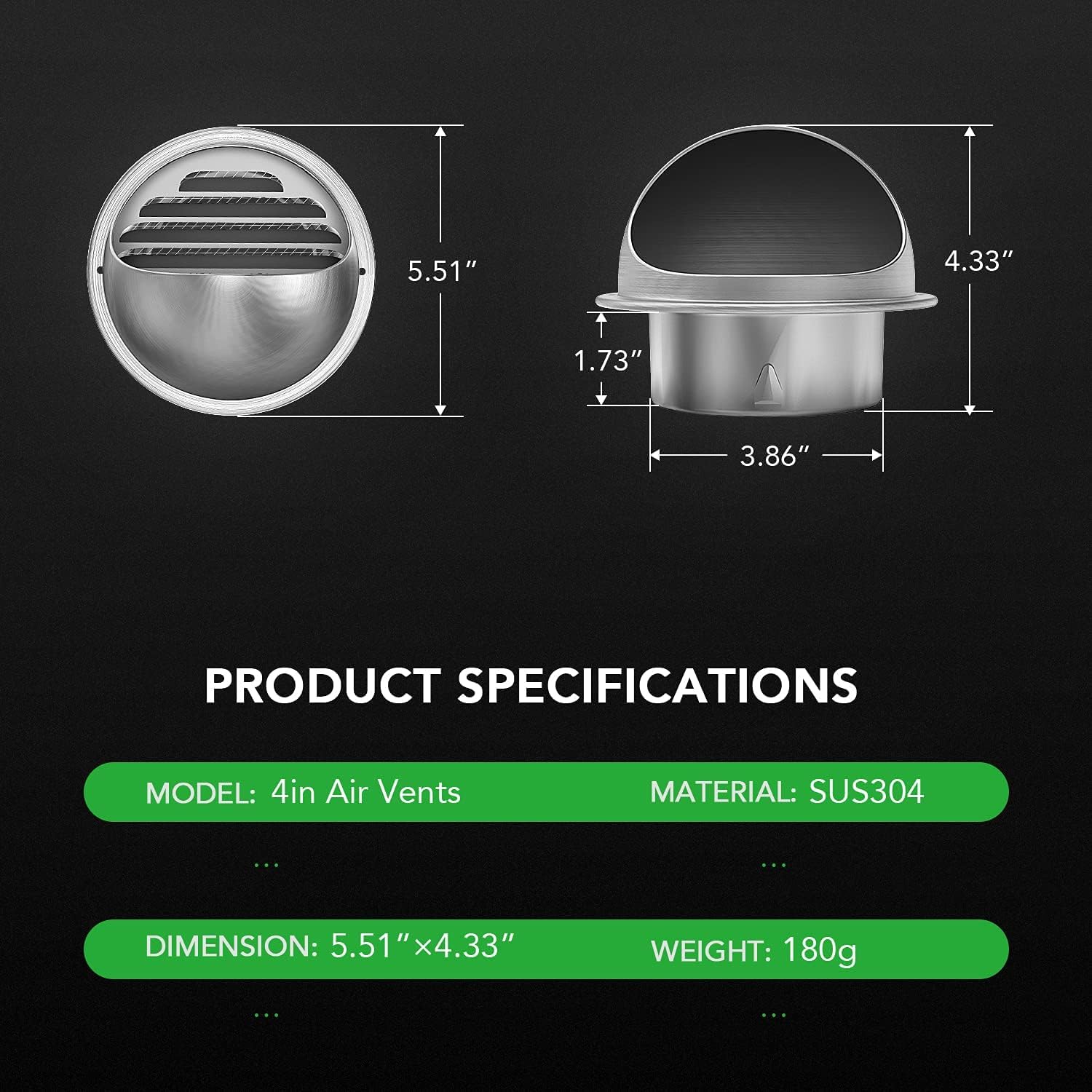 | Model Number | 4 Inch Soffit Air Vent 304 Stainless |