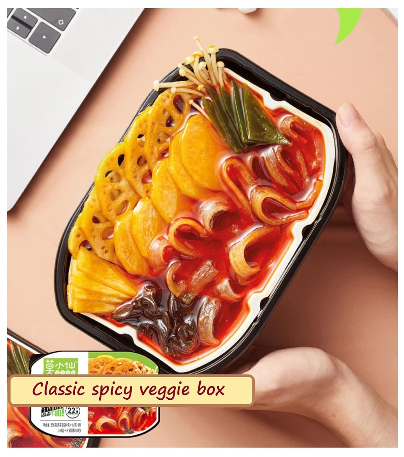 ✔Chinese traditional & popualr specialties ✔Easy portable - Small size but full of ingredients✔Directly from origin Imported & More authentic ✔Variety flavors classic Spicy, vegan collections✔Self heating Not need any cookware or tableware, just a bottle of water- Easy for camping, hiking, a train rideProduct DetailsSelf-heating mild spicy veggie hot pot *2+Spicy Sausage *1Included:Sausage pack, Vegetable pack,(About 6 kinds of fresh hot pot vegetables) Hot pot noodles pack, spicy soup base packOther materials: Heating bag, food box, chopsticks, packing boxDate of manufacture: On the packagingShelf life: 6-10 MonthsN.W:250gPackage contain: 3 boxes, serving 1-2 person per boxRecommend1. Put all ingrediens, soup base and water into food box.2. Open the heating bag ,put it into outer box , add ca.220ml cold water. (note: must be cold water and over the heating bag)3. Place the food box into outer box, close the cover and after 15 mins. Enjoy your hot pot!