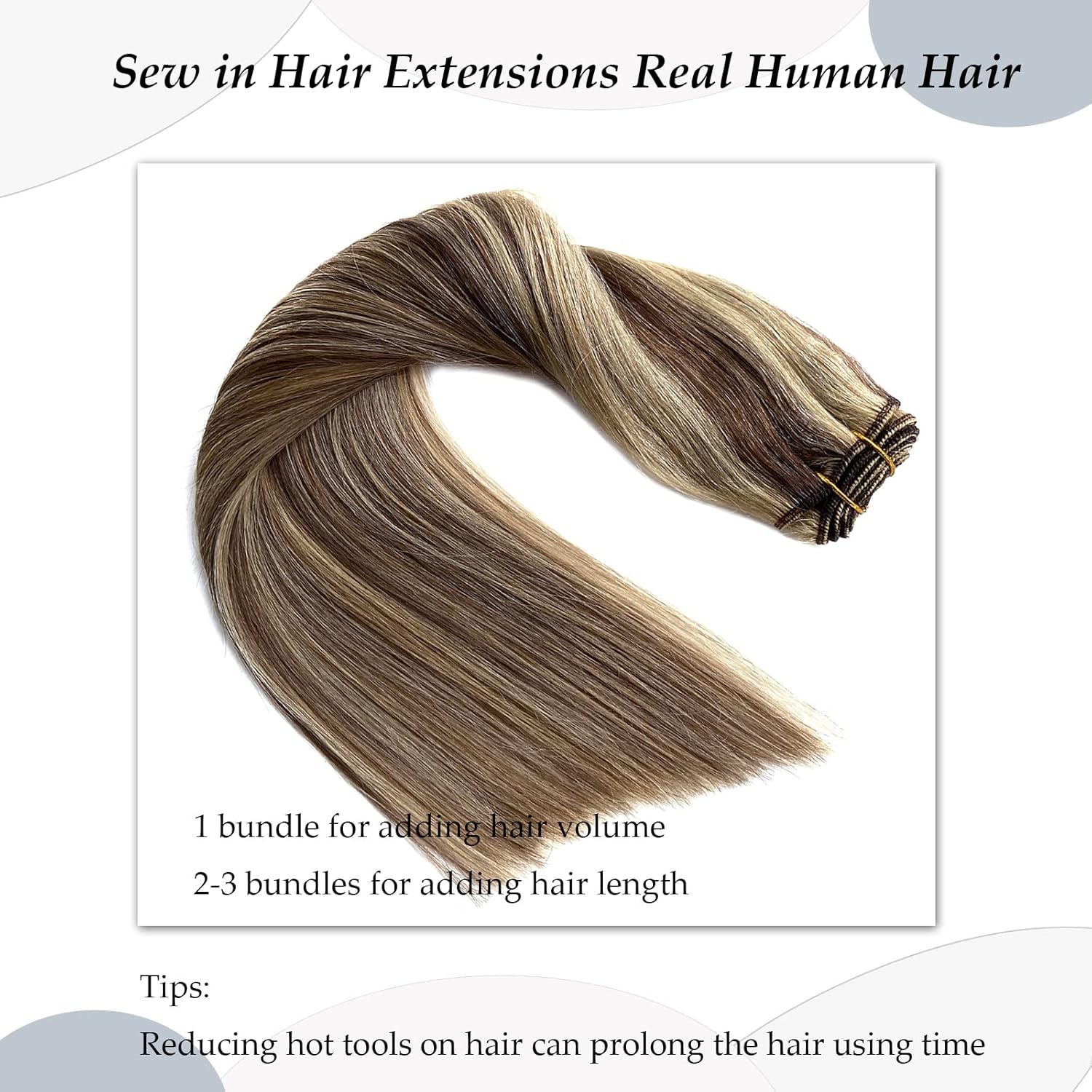 Why choose Ubetta Hair: Ubetta weft hair extensions human hair sew in weave bundles human hair is of good quality in inexpensive price, sew hair extensions real human hair can be naturally blended with your own hair and can be washed, flat ironed, or curled by using hot tools, just like your own hair, no shedding, no tangles, no smell, silky soft. If you want to add hair length or volume to your own hair, balayage brown and blonde highlights weft hair extensions human hair sew in extensions is a perfect choice. How to install weft hair extensions: Step 1:At the back of your head, create a horizontal part across of it from the nape of your neck about 2 to 3 inches long. Step 2:You will need a glue to apply at the top of the weft. Apply it on the rough side of the band. Step 3:On the glue-side of the weft, press along the part with about ¼ inch from the roots and then you can press your fingers all along to the weft. Hold for about 30 seconds for the glue to dry. Step 4:Unclip your hair and then create another horizontal part with about 0.5 inch above the first part.Repeat step 2 to 4 until you reach the crown of your head (top of the head). Step 5:On both sides of the ear, create horizontal part about 0.5 inch and cut weft a little bit smaller than the horizontal part.Repeat the process until it reaches your temple. If you are unsure about doing this process at home,we recommend you could go to Salon. Details of Weft Hair Extensions Human hair: br> Hair Type: Sew in Hair Extensions Real Human Hair Hair Material:100% remy human hair weft sew in hair extensions. Hair Length: 12 14 16 18 20 22 24 Inch Texture: straight, natural straight after washing is normal Weight: 12 14 Inch: 80G 16 18 20 Inch: 100G 22 24 Inch: 120G Quantity: 1 Bundle.